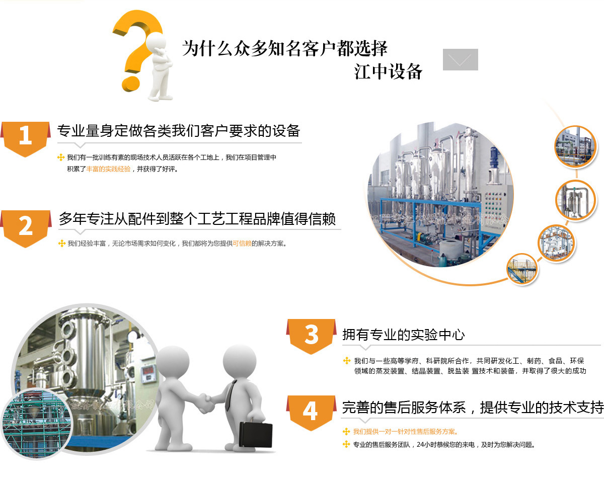 江陰市江中設備制造有限公司是一家專業從事蒸發(fā)、濃縮、提取、污水處理等設備的廠家。廣泛應用于制藥、化工、食品、農副產品深加 冶金、電子等多個領域。產品遍及全國三十余個省、市、區,并遠銷歐美及東南亞一些國家和地區。公司實力雄厚,匯聚了一批高層次、高素質 的專業人才,一直致力于產品的開發(fā)、生產和管理,并十分注重科技創新,所生產的設備受到用戶的青睞。